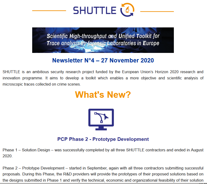 The development of the SHUTTLE toolkit will be realised through a pre-commercial procurement (PCP) action, which is coordinated and jointly carried out between forensic institutes across Europe.